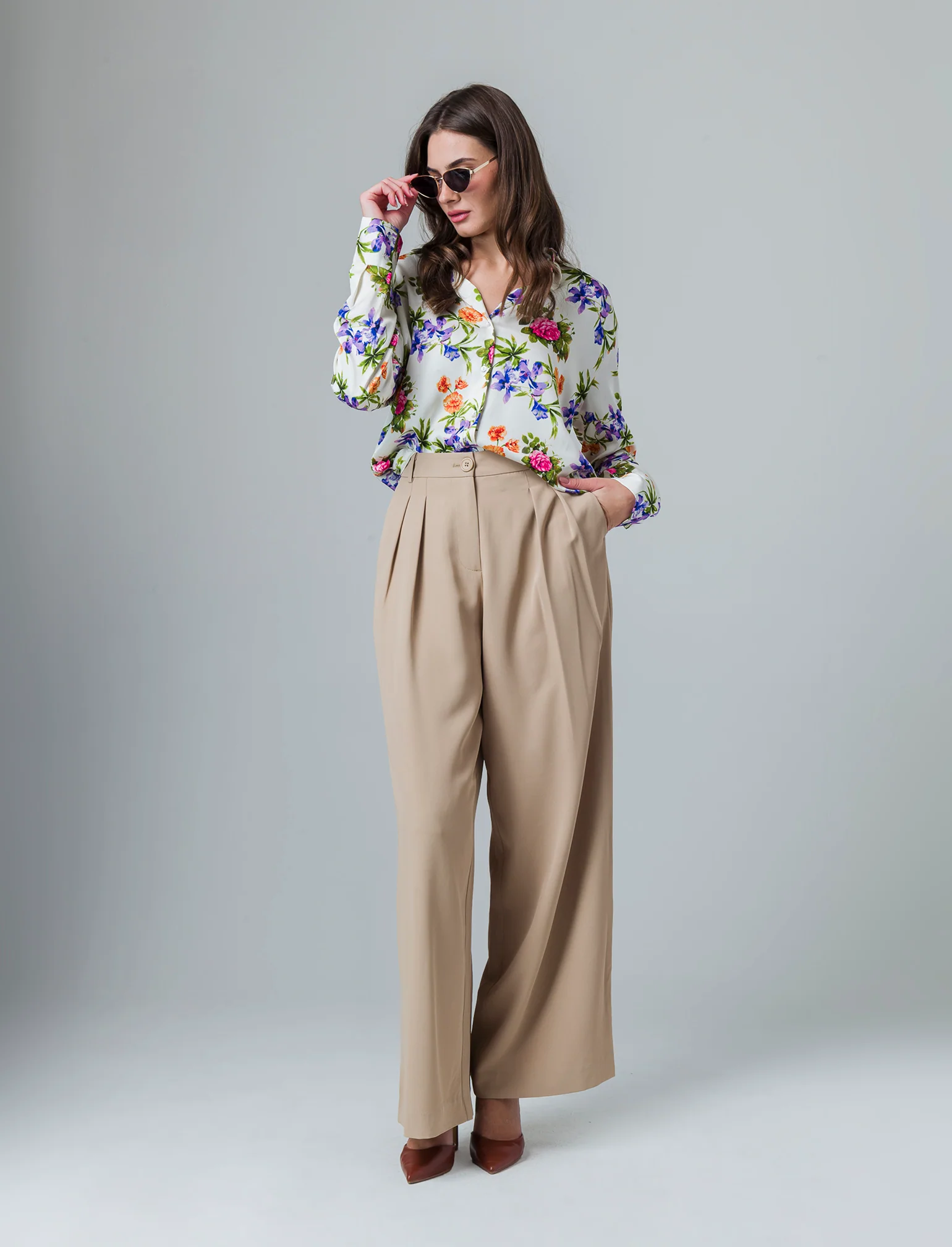 Camicia con maniche lunghe, un capo versatile e raffinato per ogni occasione. Caratterizzata da un doppio bottone al polsino, offre un tocco di eleganza e un'ottima vestibilità regular che si adatta perfettamente al corpo femminile. Ideale da indossare in ufficio o durante una serata informale, questa camicia si presta a numerosi abbinamenti, arricchendo il guardaroba con stile e praticità. Un must-have per la donna moderna. Il prodotto è di colore var 1