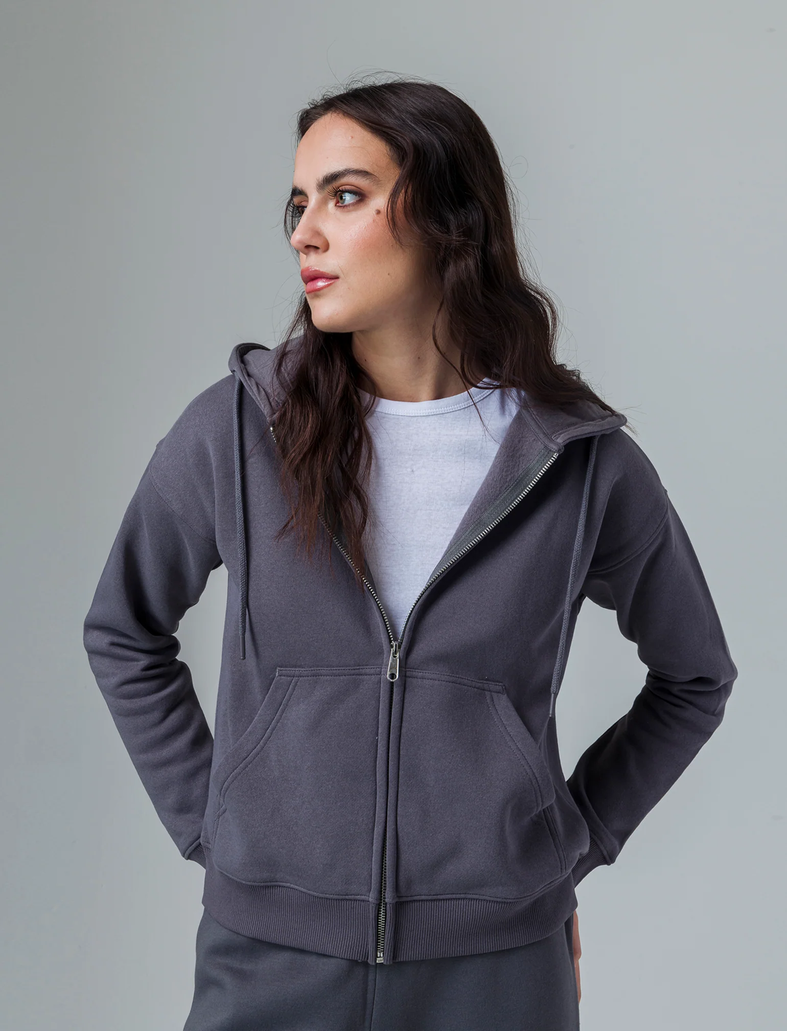 Felpa con cappuccio e zip da donna - Grigio piombo