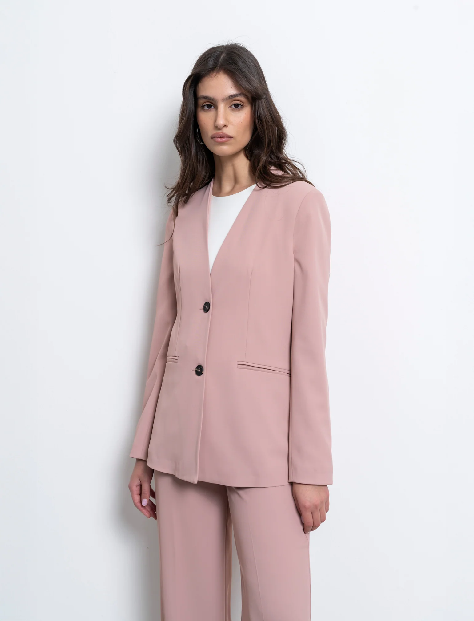 Giacca monopetto scollata senza bavaro Il prodotto è di colore Rosa